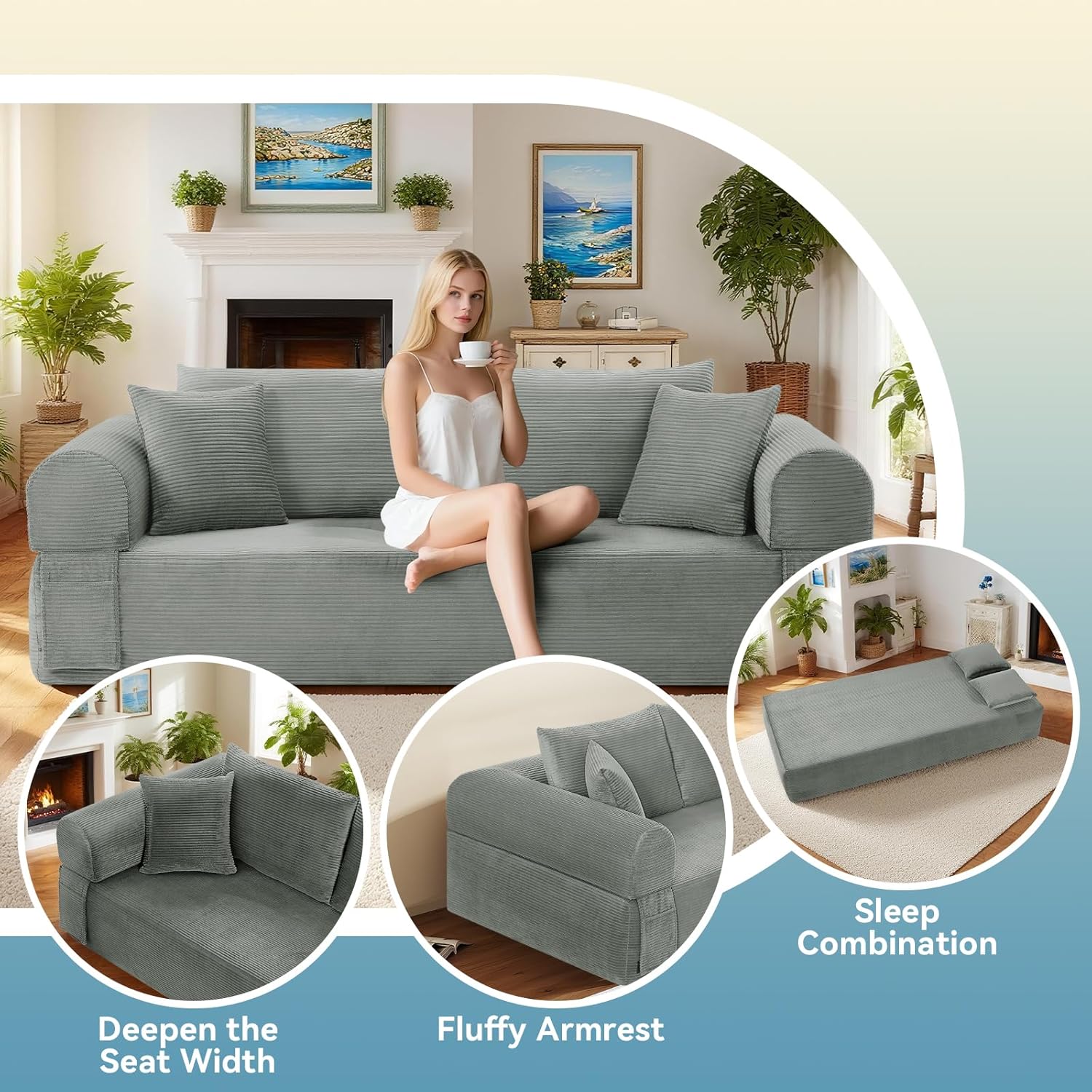 【UPHOLSTERED FLOOR SOFA 】- Crafted with soft, breathable Small Streak Corduroy fabric, The high-density foam provides superior support while relieving pressure, making it ideal for long hours of lounging or sleeping. The accompanying plush pillows enhance your relaxation experience, Sturdy construction withstands daily use, maintaining comfort and shape over time.