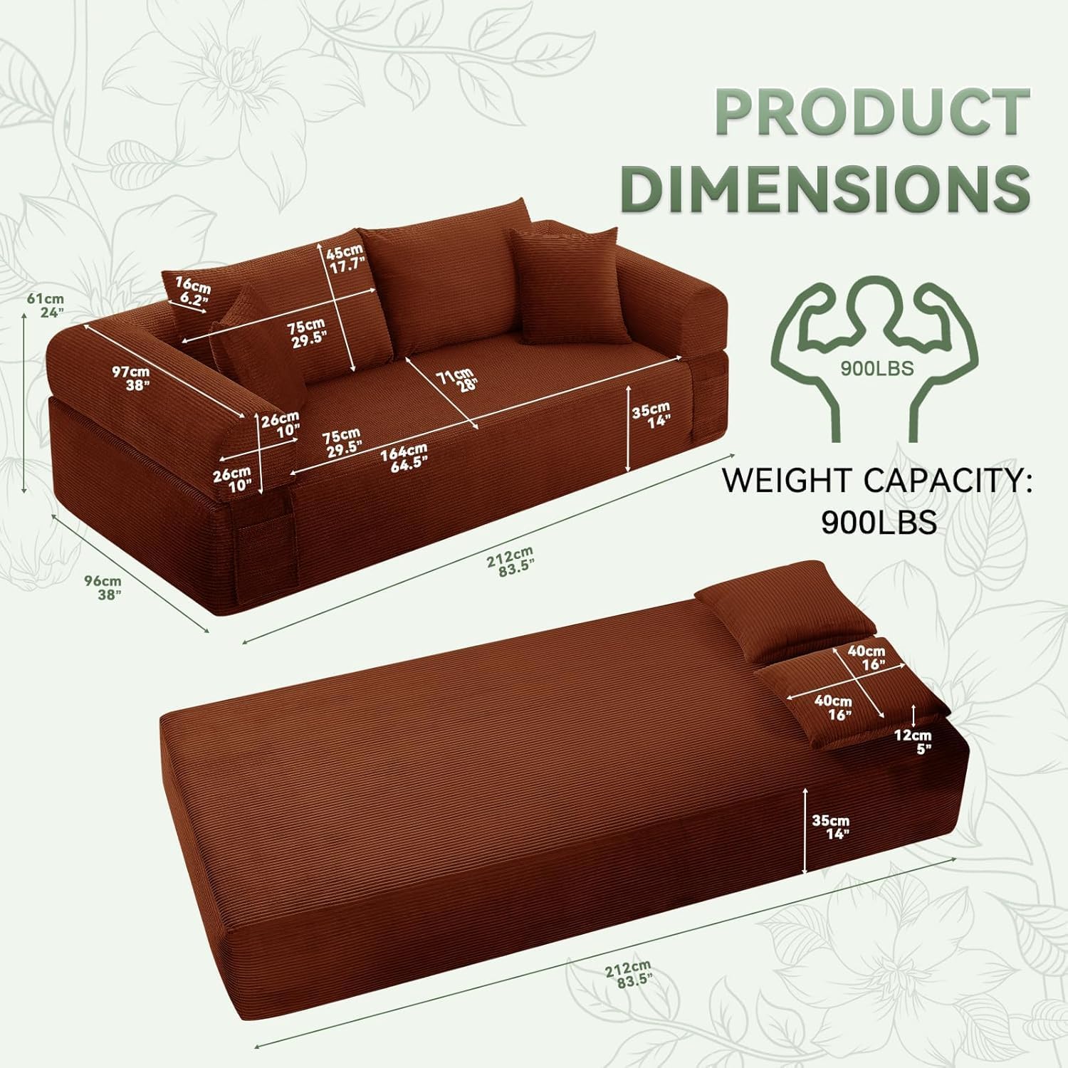 【2 IN 1 SOFA BED COUCH】- This is a convertible sofa bed, innovative design, the size has been carefully designed to quickly switch between sofa and sofa bed, one person can complete the operation, sofa size: 83.5x38x24 in, sofa bed size: 83.5x38x14in, without sacrificing the floor space, but still provide spacious seating space.